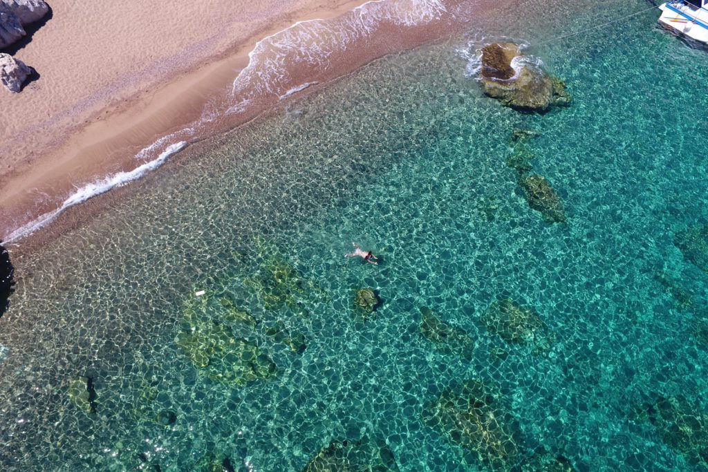 Arrival at Red Sand Beach you can swim at green-blue color Sea and looking at panoramic view. Swim in the peaceful waters off Tsampika Beach, Cap your cruise at Small Caves, set above idyllic caves and bays.